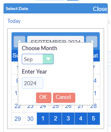 In addition, there is a quick access calendar button that allows you to easily switch to different months or years. If you open this mini calendar, you can navigate directly to different days of the month by clicking on them, change months by clicking the forward and back arrows, or select specific months and type in the year you want to navigate to using another selection pop-up.