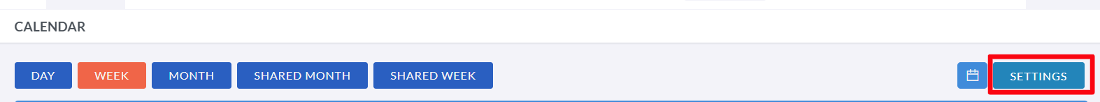The Settings button is located here as well, which allows you to customize the calendar according to your preferences.