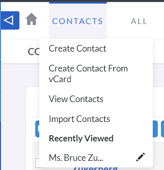 You will be redirected to the List View of the Contacts module, enabling you to search and list Contact records.