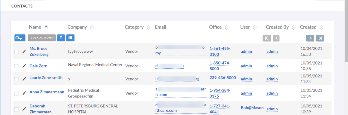 - Click on any sortable column title to sort the records in the Contacts List View either in ascending or descending order.