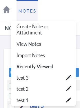 - To modify the Note details, use the Edit icon in the List View, or select the Edit button in the Actions tab of the Detail View, make the necessary changes, and Save the updated record.