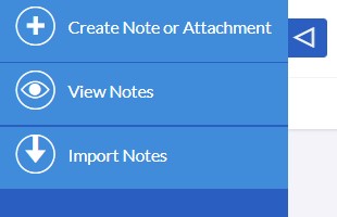 The Notes module menu dropdown or Sidebar provides access to the Notes actions, which include: