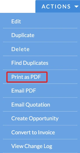create PDF documents for Quotes, Invoices, Contacts, and Leads.