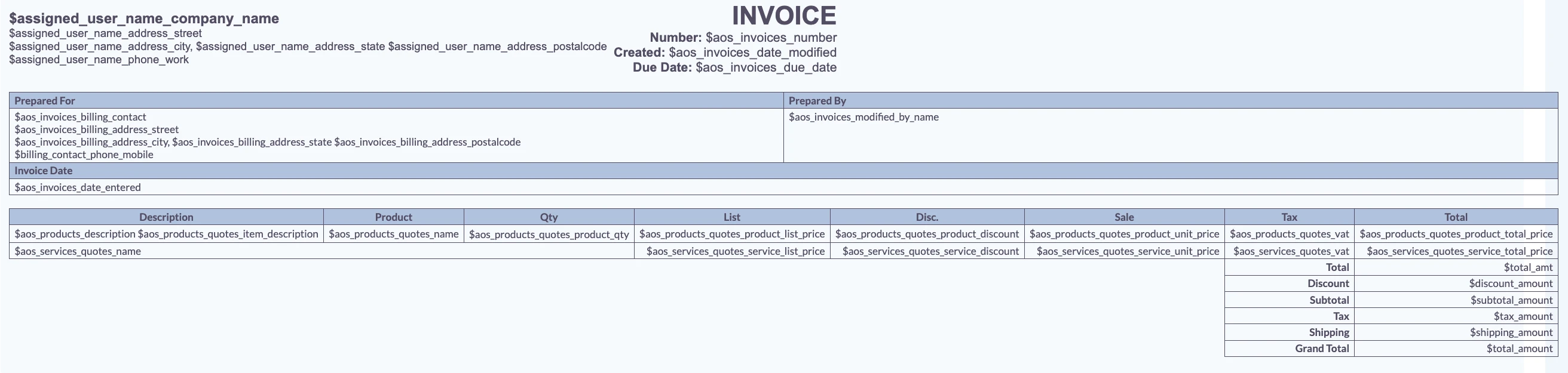 If you are using a sample to generate a template for Quotes or Invoices, the Line Items will be presented in a table format. You have the option to modify the fields within this table, and add or delete columns as needed. However, please be aware that if you are starting a template from scratch, you will need to format the Line Items section as a table yourself.