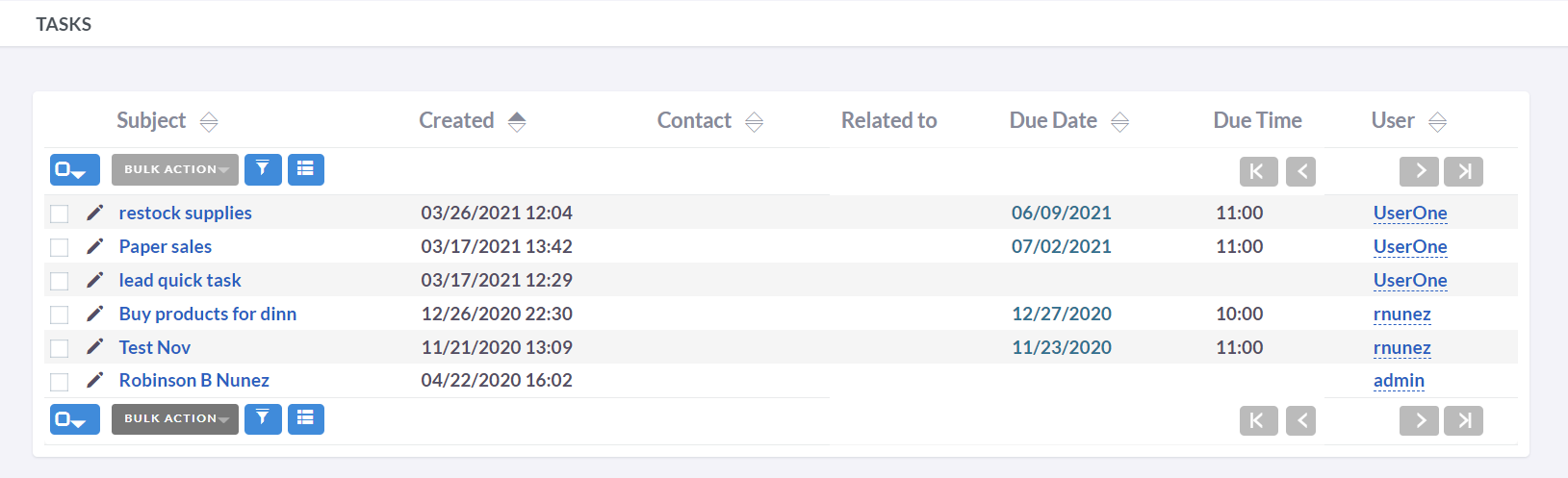 By clicking on it, you will be redirected to the List View for the Tasks module, which enables you to search and display Task records.